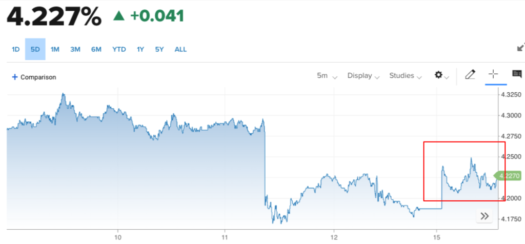 Image: CNBC, red square added to show higher yields after assassination attempt.
